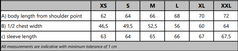 - Adjustable sleeves with velcro